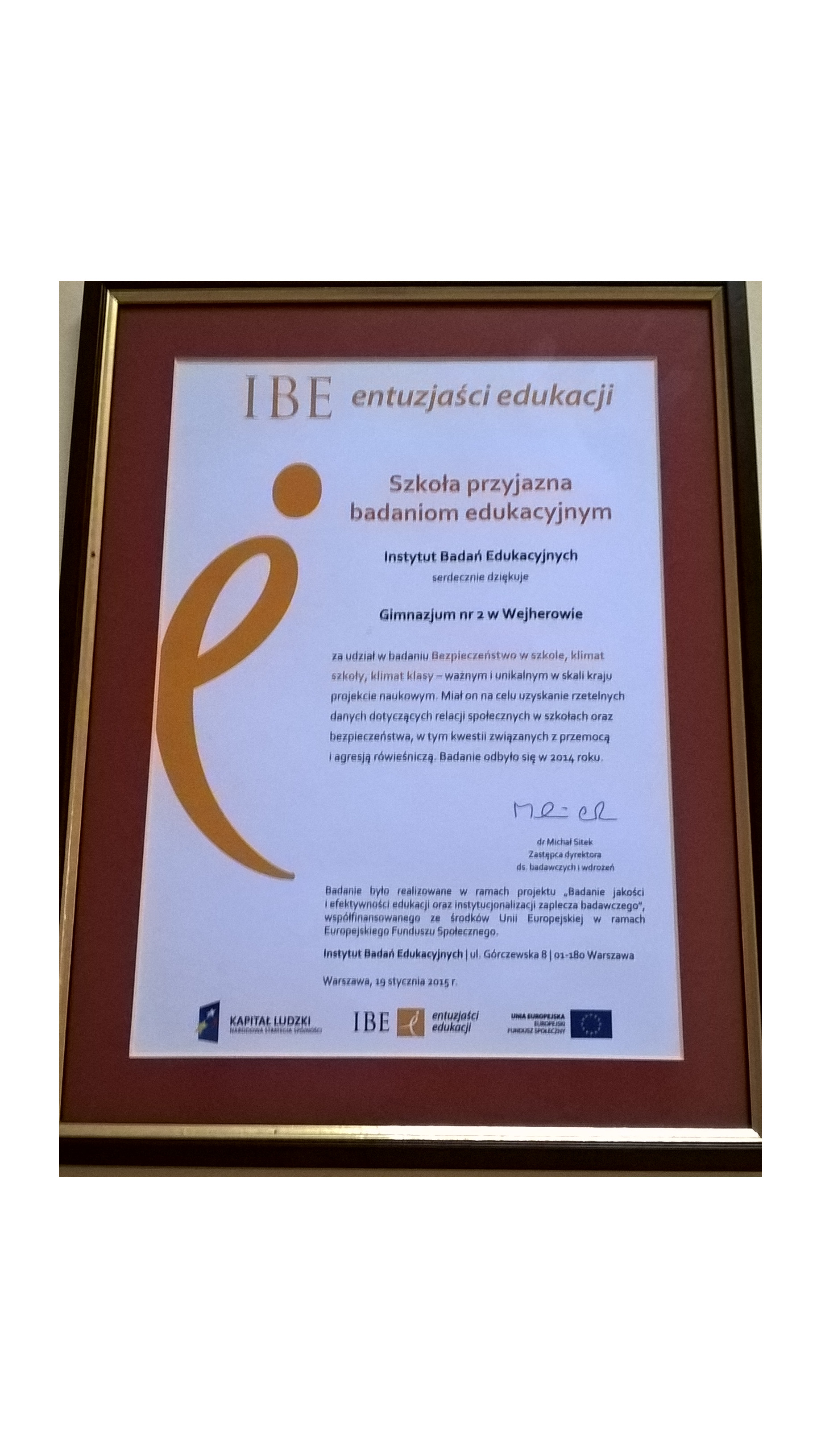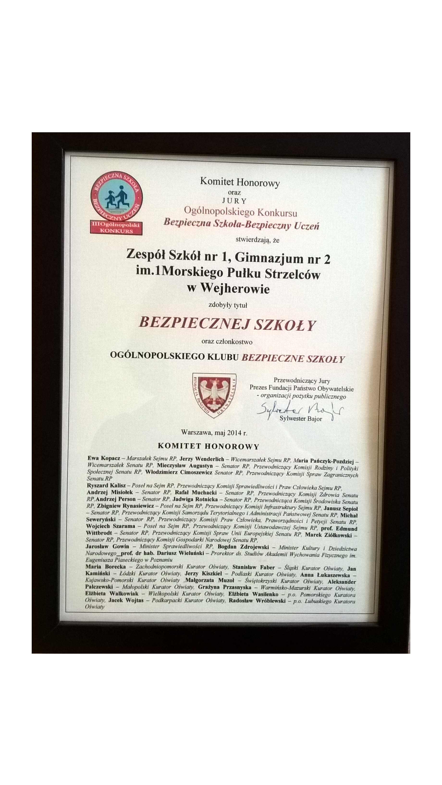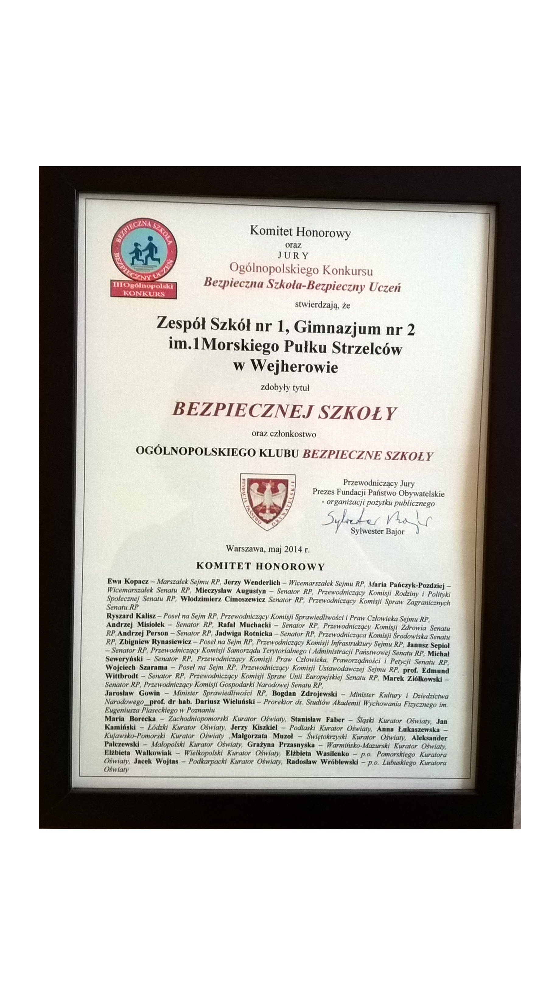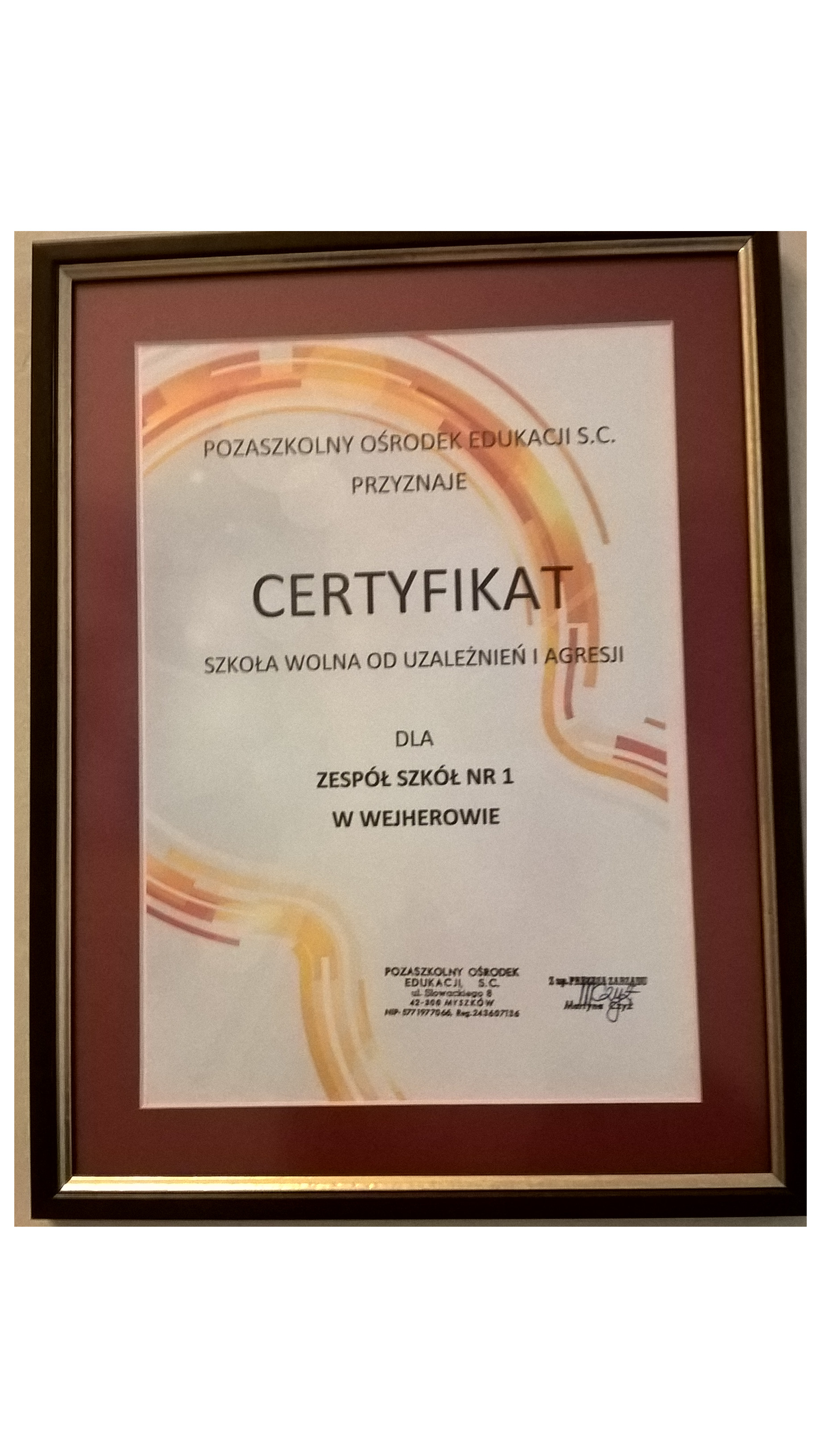 Informacja dla absolwentów i pracowników Szkoły Podstawowej nr 2 i Gimnazjum nr 2 im. Morskiego Pułku Strzelców w Wejherowie przy ulicy Kalwaryjskiej nr 3.