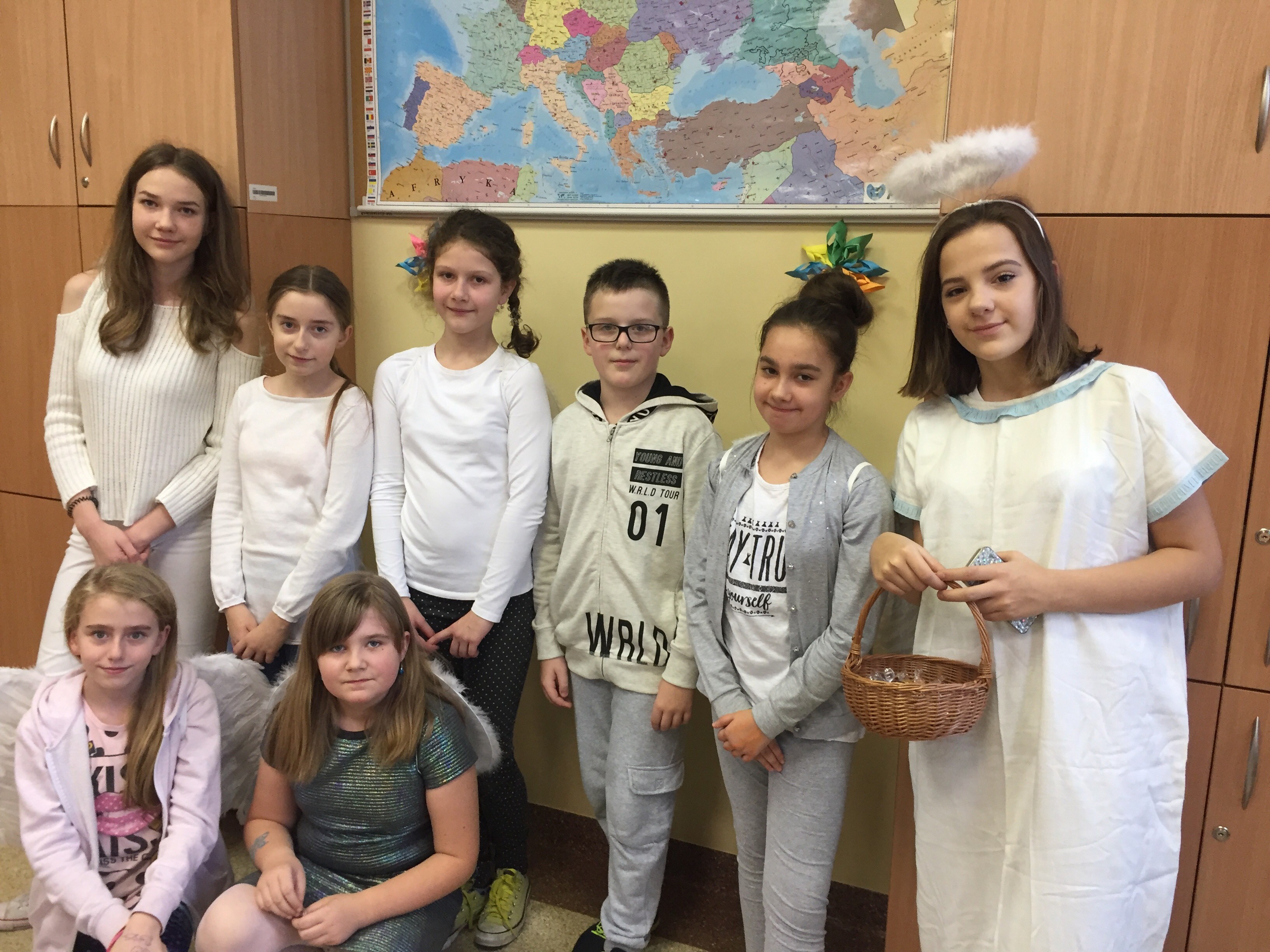W ramach projektu "Radość Świąt Bożego Narodzenia" w piątek 8 grudnia odbył się w naszej szkole - Dzień Anioła. Tego dnia uczniowie, którzy mieli białe stroje lub przebrali się za aniołki otrzymywały słodki upominek. Przygotowana została także tematyczna gazetka.