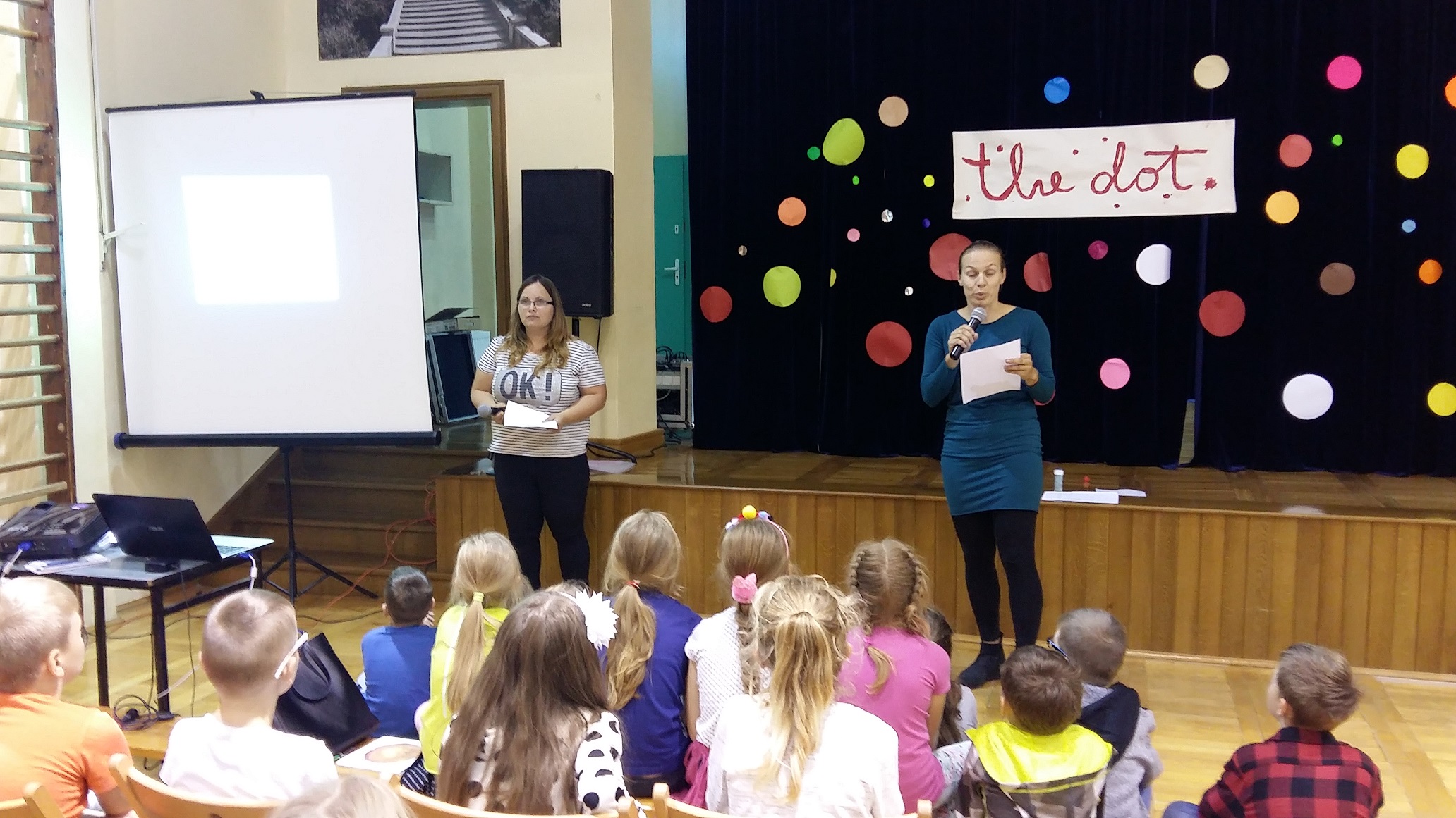 Dnia 15 września obchodziliśmy w naszej szkole Międzynarodowy Dzień Kropki. Podczas uroczystego apelu uczniowie klas I-III poznali historię Vashti, którą opisał w swej książeczce "The Dot" Peter Reynolds. Klasa III c przygotowała na tę okoliczność specjalną piosenkę zatytułowaną "Uwierz w siebie". Dzięki zabawom i projekcji filmu uczniowie uświadomili sobie, że każdy ma swoją wartość i ukryte talenty, w które należy tylko uwierzyć, a zwykła kropka może stać się drogą do osiągnięcia sukcesu. Za organizację spotkania odpowiadały p. Katarzyna Albecka, Hanna Lewińska- Pawlak, Agnieszka Ziębakowska.