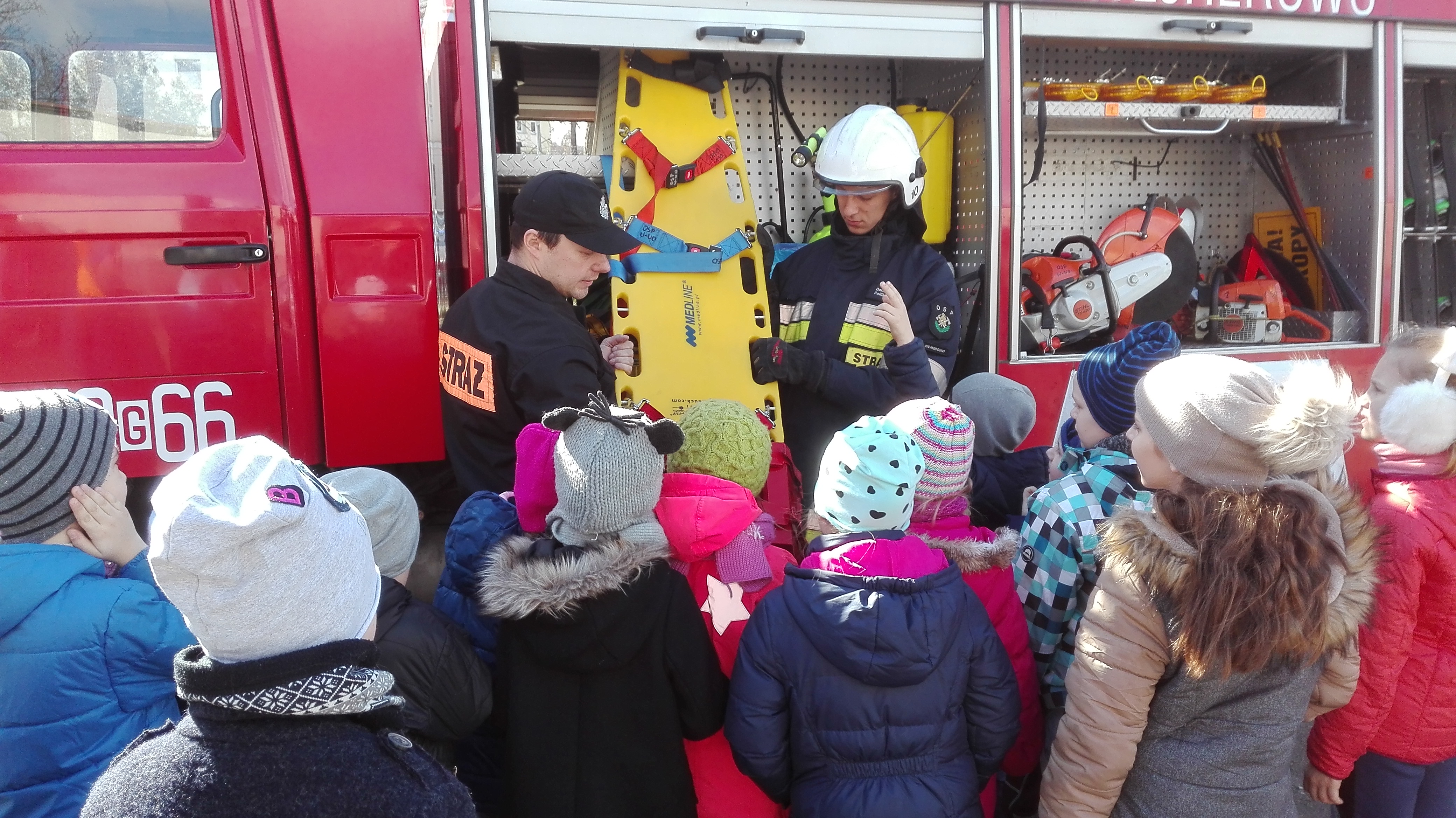 Dnia 21 marca 2017 r. uczniowie klasy II e odwiedzili Ochotniczą Straż Pożarną w Wejherowie. Dzieci uczestniczyły w rozmowie na temat pracy strażaka, utrwaliły numery alarmowe, usłyszały cenne wskazówki na temat wzywania pomocy i rozmowy z dyspozytorem, dowiedziały się jakie zagrożenia mogą je spotkać w różnych sytuacjach i jak ich unikać lub zminimalizować ich skutki. Zobaczyły ubiór i sprzęt strażacki. Następnie każde z dzieci mogło poczuć się jak strażak :) :zasiąść w wozie strażackim, „lać wodę” z węża strażackiego oraz przymierzyć najprawdziwszy kask strażacki :) . Bardzo dziękujemy!