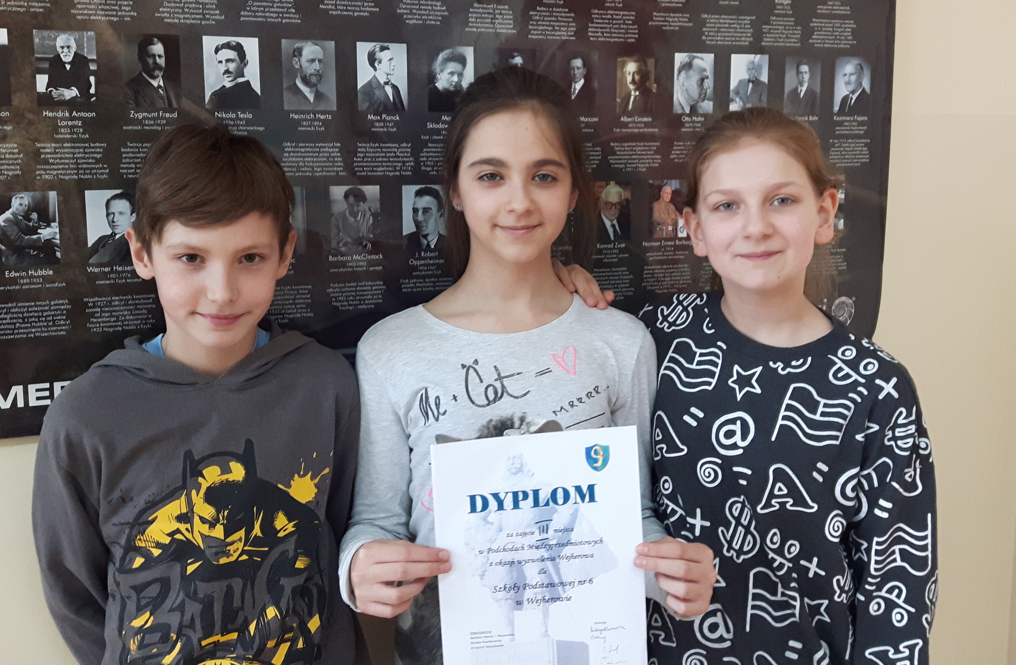 10 marca uczniowie wejherowskich szkół podstawowych brali udział w podchodach z okazji 72 rocznicy wyzwolenia Wejherowa z rąk hitlerowców. Zmagania rozpoczął test interaktywny z historii, po nim odbyły się podchody w mieście, a uwieńczeniem były zadania konkursowe dla drużyn. Szkołę Podstawową nr 6 reprezentowali: Zofia Polak, Amelia Ptach, Tristan Kowalewski. Drużyna pod opieką wychowawcy, pana Arkadiusza Szlasa, zdobyła III miejsce. Gratulujemy!!!