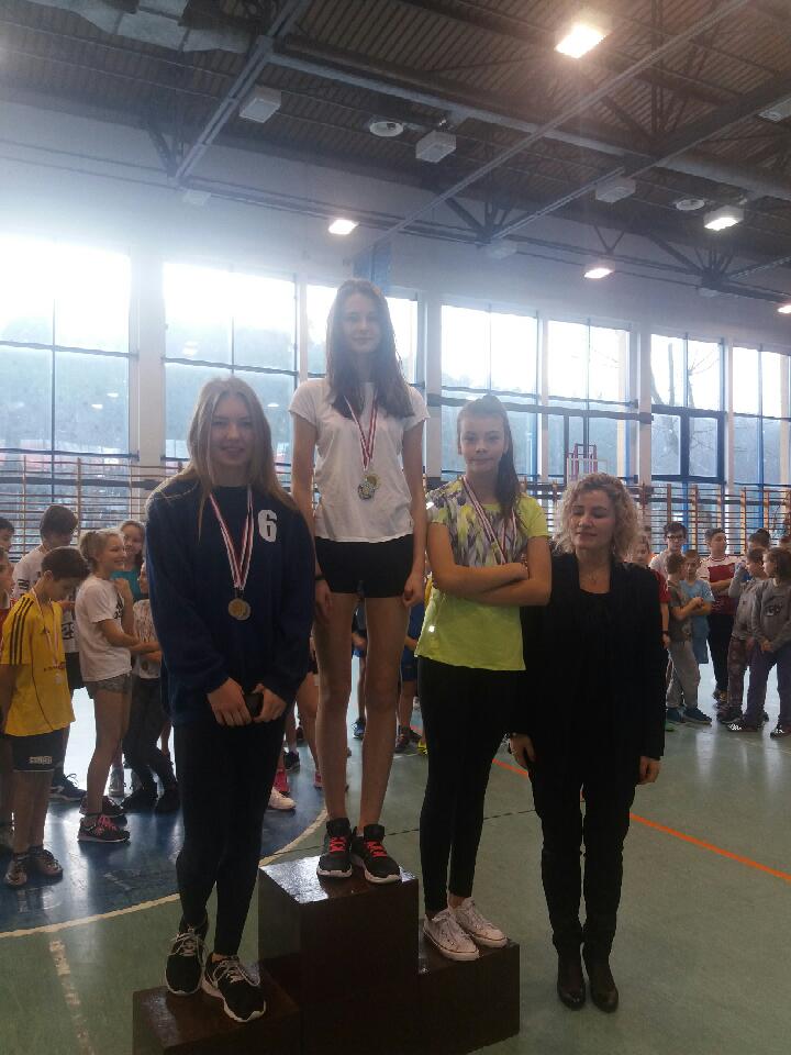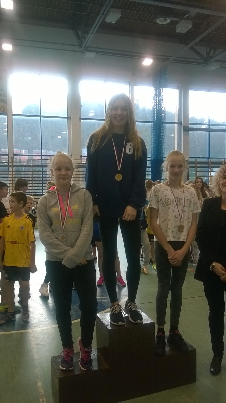Srebro Paulina Pielak oraz rzut piłką lekarską złoto -skok wzwyż brąz - Justyna Litwin. Medale wręczała pani dyrektor Justyna Boszke.