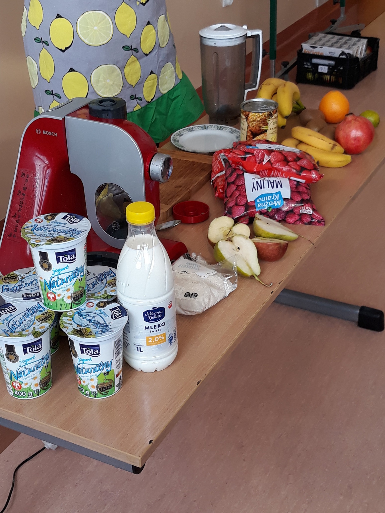 W związku z przystąpieniem klasy ID (wych. J. Semmerling) do III etapu ogólnoposlkiego projektu "Zdrowo jem, więcej wiem" mieliśmy okazję znowu spotkać się z wyjątkowymi osobami. Tym razem była to pani Paulina Gosz oraz pan Robert Wicon. Pani Paulina zawodowo zajmuje się zdrowym żywieniem. Postanowiła zaprezentować klasie jak można przyrządzić smaczne, ale przede wszystkim zdrowe przekąski, które z powodzeniem zastąpią nam niekoniecznie zdrowe produkty zakupione w sklepach. Smakowaliśmy przepyszne lody truskawkowe, naturalne soki owocowe oraz zdrowe jogurty owocowe bez dodatku cukru. Ale było pysznie... Kolejne zajęcia odbyły się pod okiem pana Roberta Wicon, który przeprowadził z nami zajęcia z elementami piłki ręczniej. Jeszcze nigdy nie wyszliśmy tak zmęczeni po lekcji W-fu.