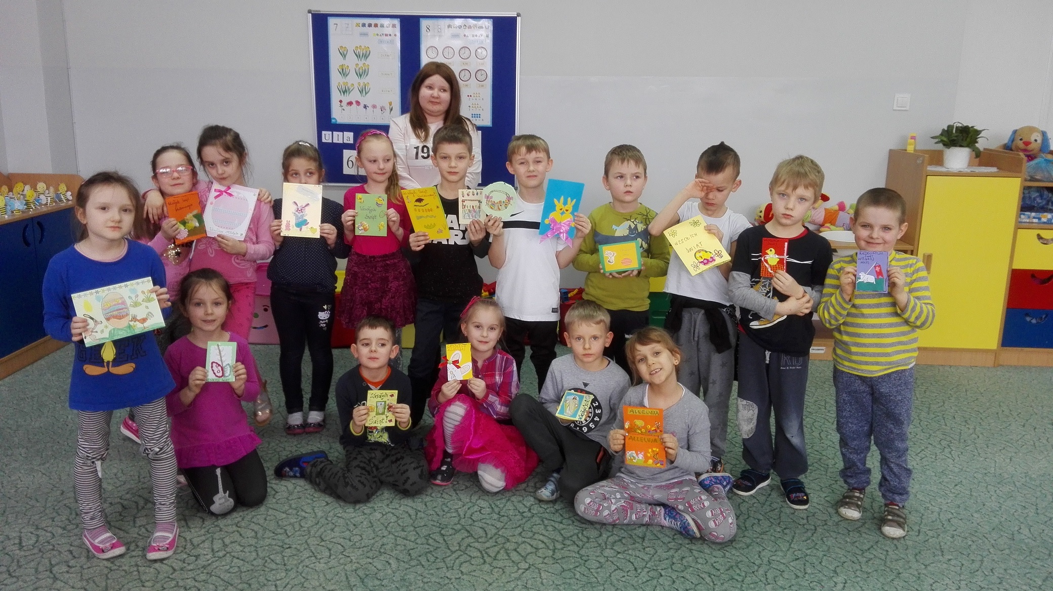 W zwiazku ze zbiżającymi się Świętami Wielkanocnymi dzieci z rocznego przygotowania przedszkolnego postanowiły przygotować kartki świateczne dla wejherowskiego hospicjum. Kartki w naszym imieniu przekaże uczennica Anita Rompca z klasy 2 gimnazjum.