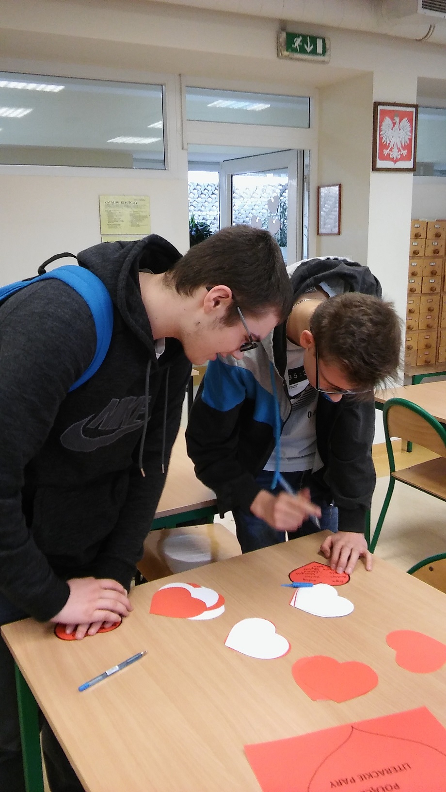 14 lutego uczniowie mieli okazję sprawdzić swoją znajomość postaci literackich. Ich zadaniem było połączenie w pary bohaterów znanych powieści dla dzieci i młodzieży. Tytuły znawców postaci literackich otrzymali: Magda Motycka, Dominik Sokołowski, Klaudia Okoń, Filip Jaskuła, Wanesa Małecka, Ola Motycka, Misia, Martyna Angel, Malwina, Dominika Milewczyk, Mateusz Browarczyk.Gratulujemy!!!
