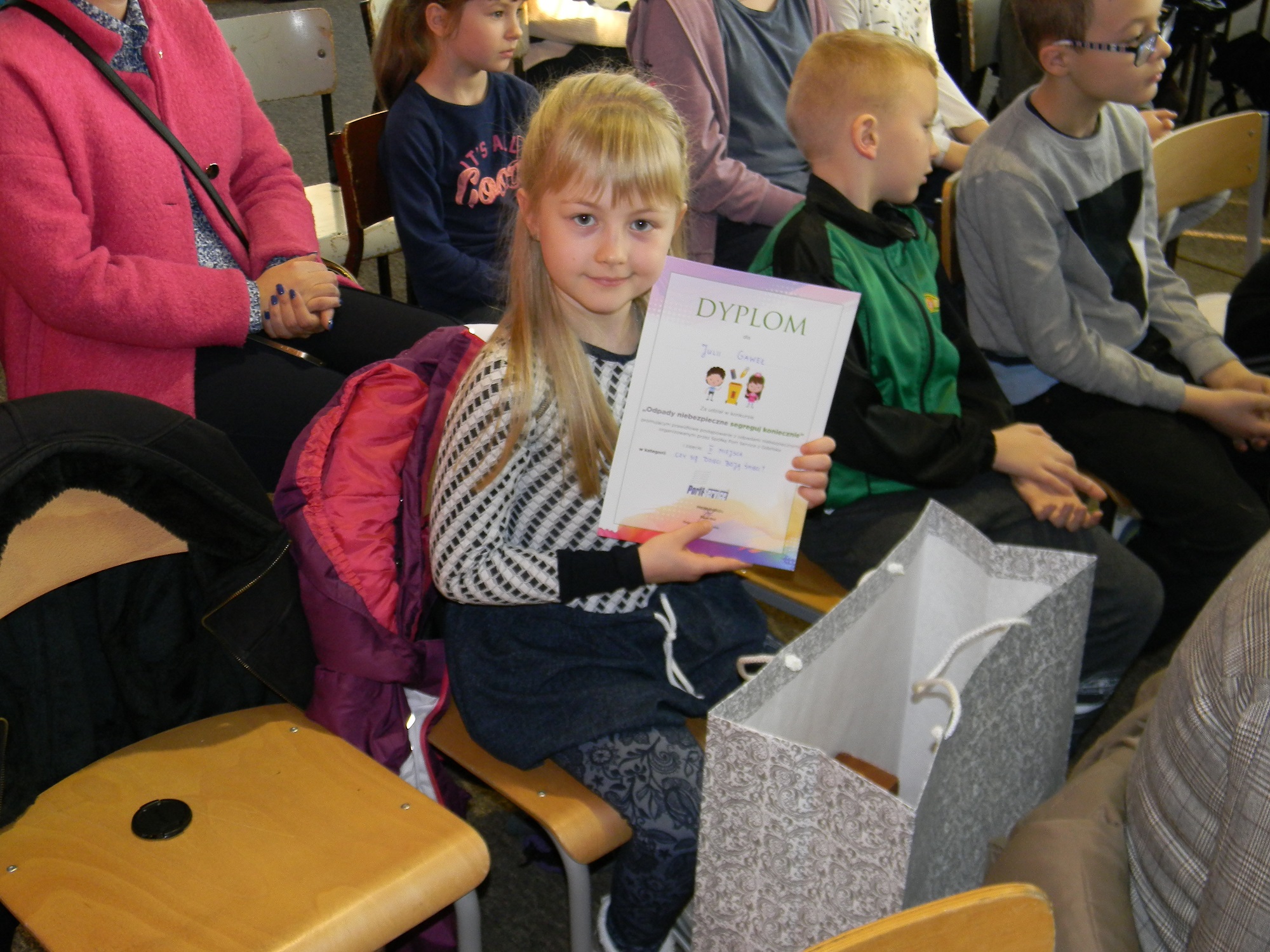 Uczennica kl. III c Julia Gaweł zajęła II miejsce w Wojewódzkim Konkursie Plastyczno-Ekologicznym „Odpady niebezpieczne segreguj koniecznie!” organizowanym przez Spółkę Port Service. Celem konkursu było stworzenie plakatu promującego prawidłowe postępowanie z odpadami niebezpiecznymi w domu. Wręczenie nagród odbyło się w Szkole Podstawowej nr 61 w Gdańsku. Gratulujemy!!!
